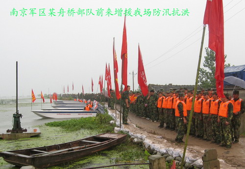 10时许,1200余名武警官兵和地方武装部队聚集焦岗湖农场(中心桥处)中心沟两岸,面对顽固的焦岗湖洪魔,向前来视察慰的中国人民解放军总政治部副主任刘振起中将宣誓: