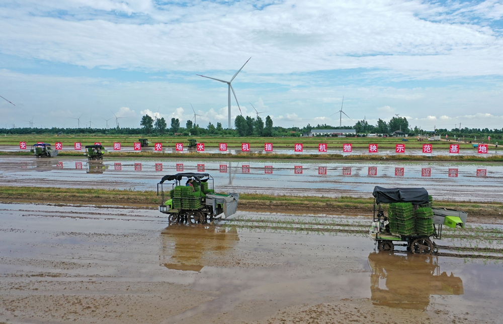 农垦集团作为安徽省属国有企业中唯一以农业为主体的企业集团,高度重视华阳河农场、淮南农场两个“双机”示范农场建设,要求两场务必发挥国有农场示范带动作用,力争建成全省标杆示范点。集团用足用活政策资金,全力争取中央购机补贴和中央财政集中育秧设施建设项目资金,充分利用省级财政“支持农机全程社会化服务”资金,及时落实奖补资金。目前,两个农场共投入 275万元资金,筹备高速插秧机36台、有序抛秧机8台,建立育秧流水线6套。在这过程中,农垦集团与安农大农学院合作,强化培训和实战,对相关人员进行密集技术培训,组织外出参观考察、开展流水线实战演练……两场共落实机插秧8100亩、机抛秧2000亩,超过省厅安排的任务。