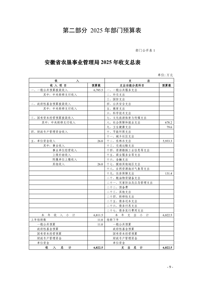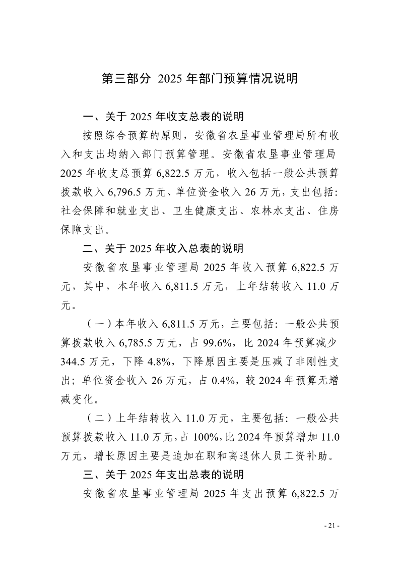 安徽省农垦事业管理局2025年部门预算