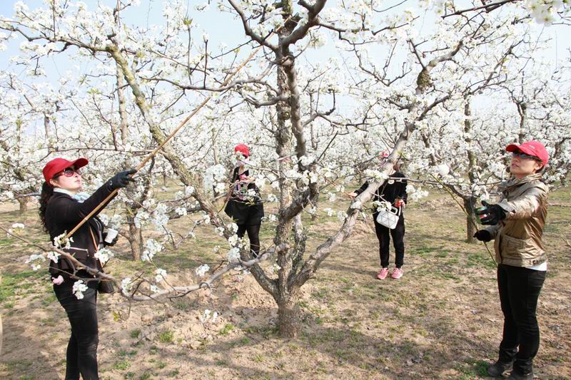 近期,砀山果园场春暖花开,阳光明媚,万亩梨花竞相盛放,广大职工正徜徉在花海间授粉忙。场机关各部室、分场、社区人员纷纷伸出援手、搞好服务,组织志愿队提供多方帮助,确保承租大户和困难职工的梨园同步授上粉、坐上果。