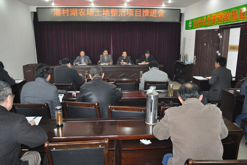 1122,潘村湖农场召开土地整治项目推进会,安排部署了当前和下一阶段工程建设。省农垦土地分局和项目建管处、施工监理单位负责人及工程技术人员参加会议。