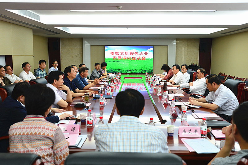 522下午,安徽省农委党组书记、主任孙正东会同省农科院、安徽农大领导一行,专程来农垦调研现代农业发展、示范引领作用发挥、社会化服务体系建设、深化改革创新等工作。省农垦集团董事长、党委书记田文俊主持召开了调研座谈会,总经理李卓民、副总经理刘超、李家堂、陈仁虎、纪委书记储诚胜、总会计师高有荣以及省农口各单位部室负责人参加座谈。