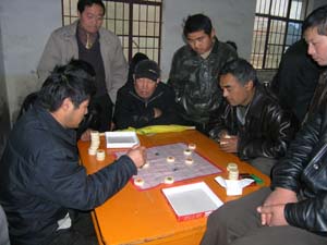 为丰富农场职工节日期间文化娱乐生活,潘村湖农 场于近日举办了迎新年职工棋牌比赛活动。来自场 属各单位的88名选手参加了象棋和扑克牌比赛。图 为精彩激烈的象棋比赛吸引了众多观众。(杨登 宏)
